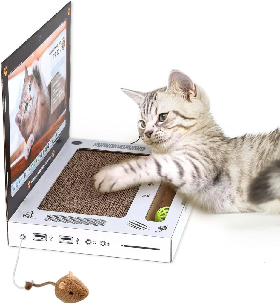 Rascador para gato con diseño de laptop