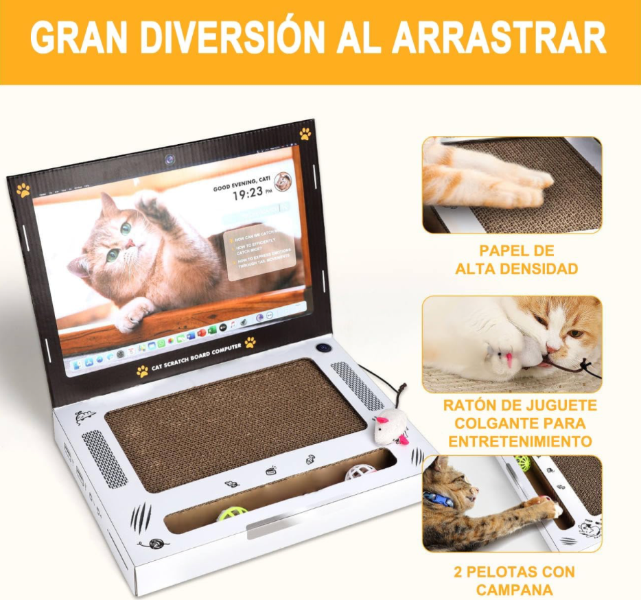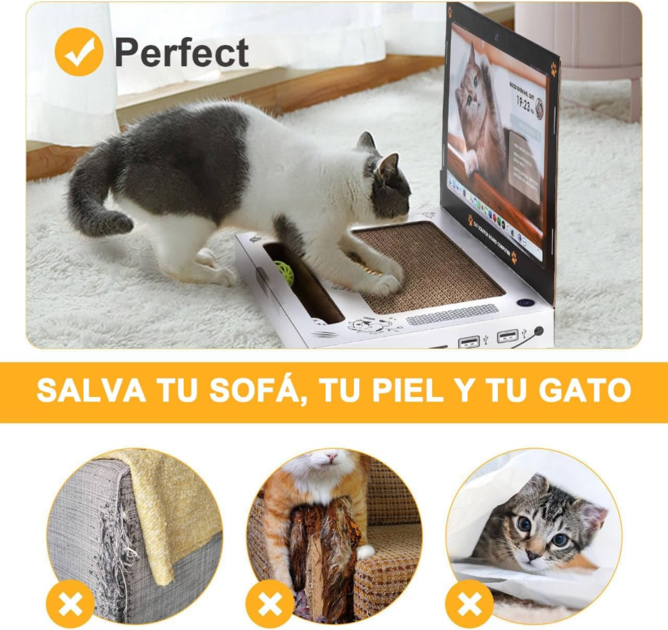 Si te encanta que tu gatito te acompañe mientras trabajas o estudias, pero siempre termina desordenándolo todo al subirse a tu laptop, este rascador es perfecto para ambos. Con forma de computadora portátil para que tu michi se sienta incluido, y sin interrumpir tu trabajo. ¡Una solución divertida, funcional aprobada por los gatos más curiosos!